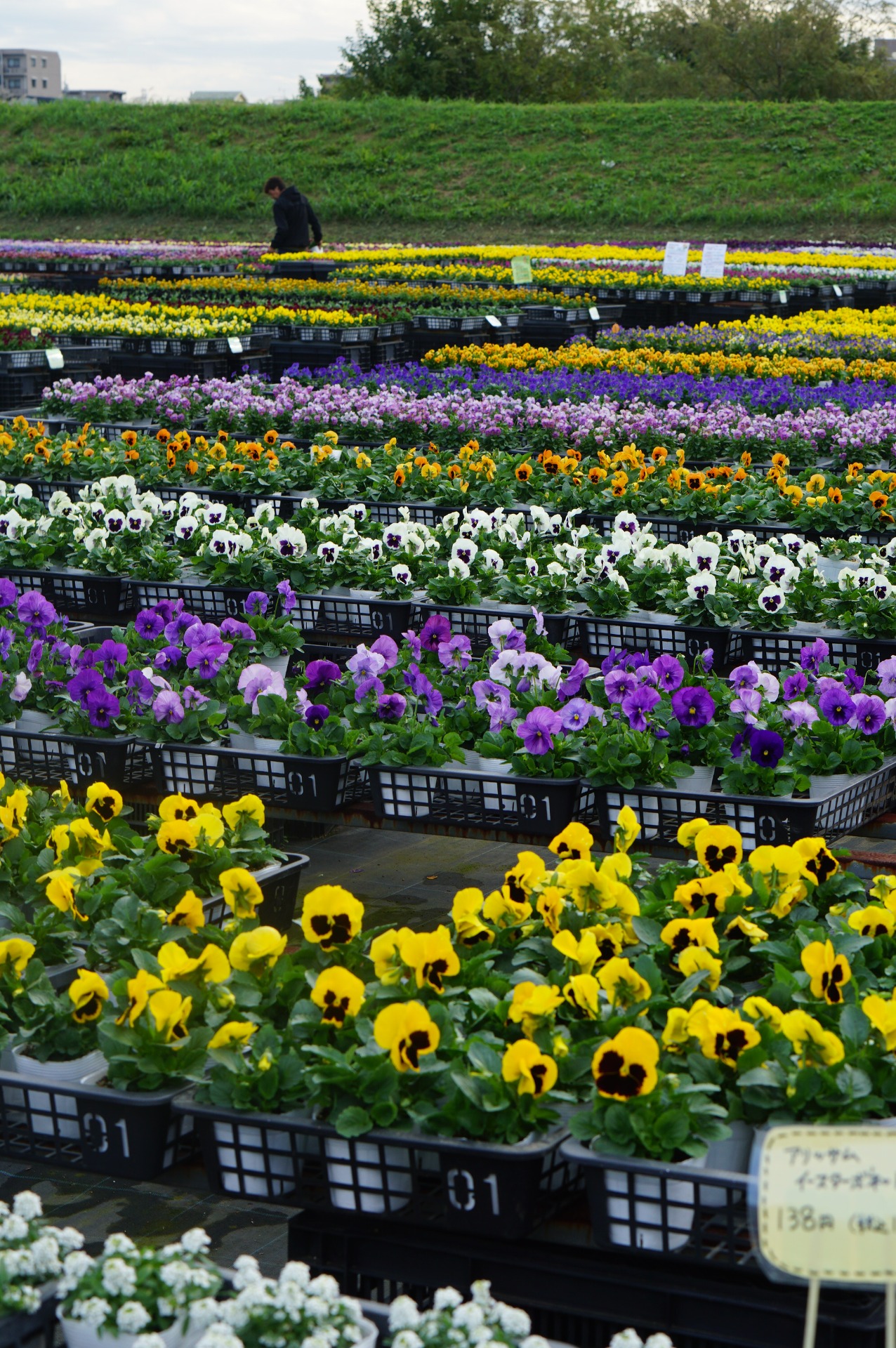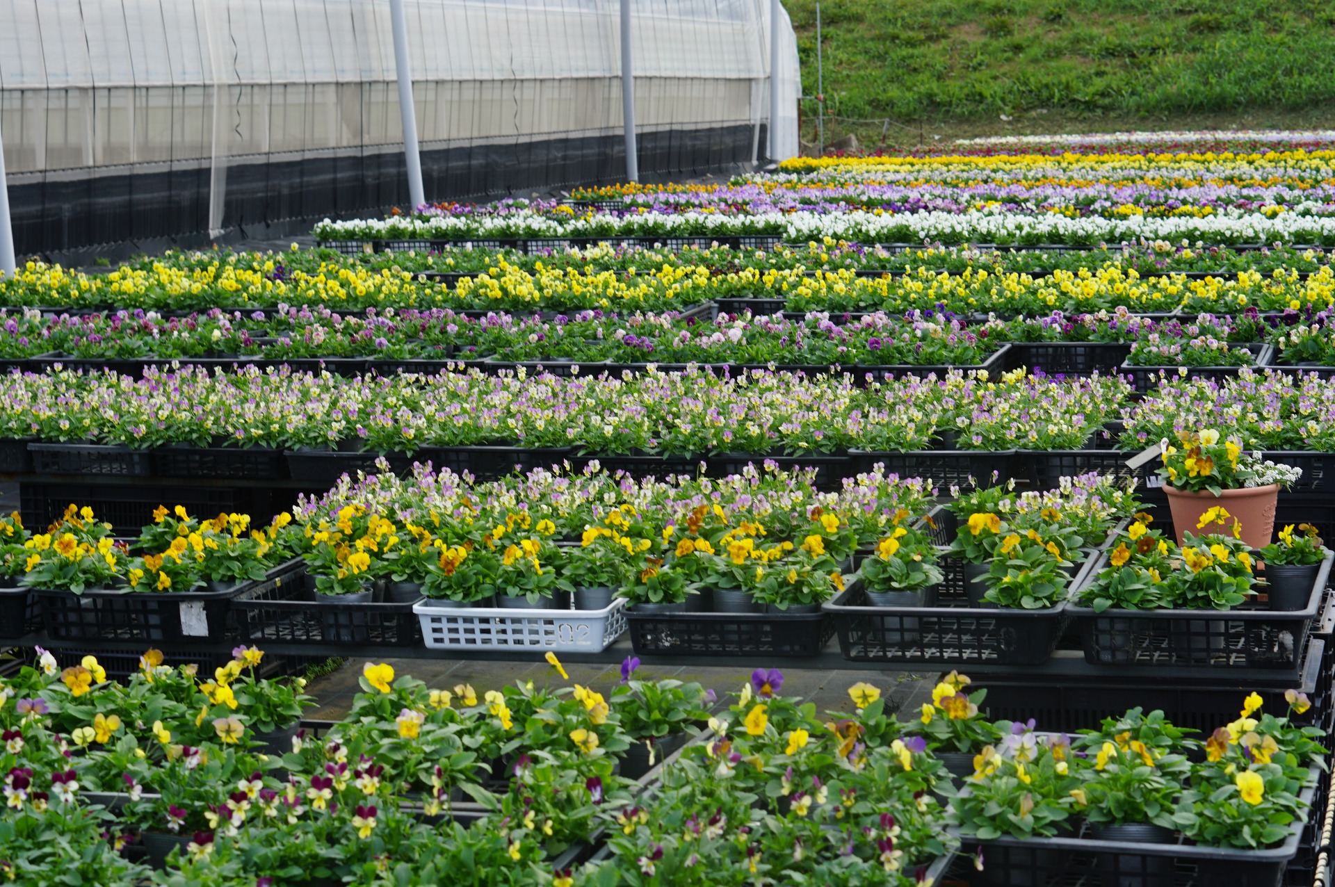 パンジー・ビオラ農場が花盛りです、花も咲き始めました、☺️高級ビオラ・パンジー株がしっかりとOK🌞