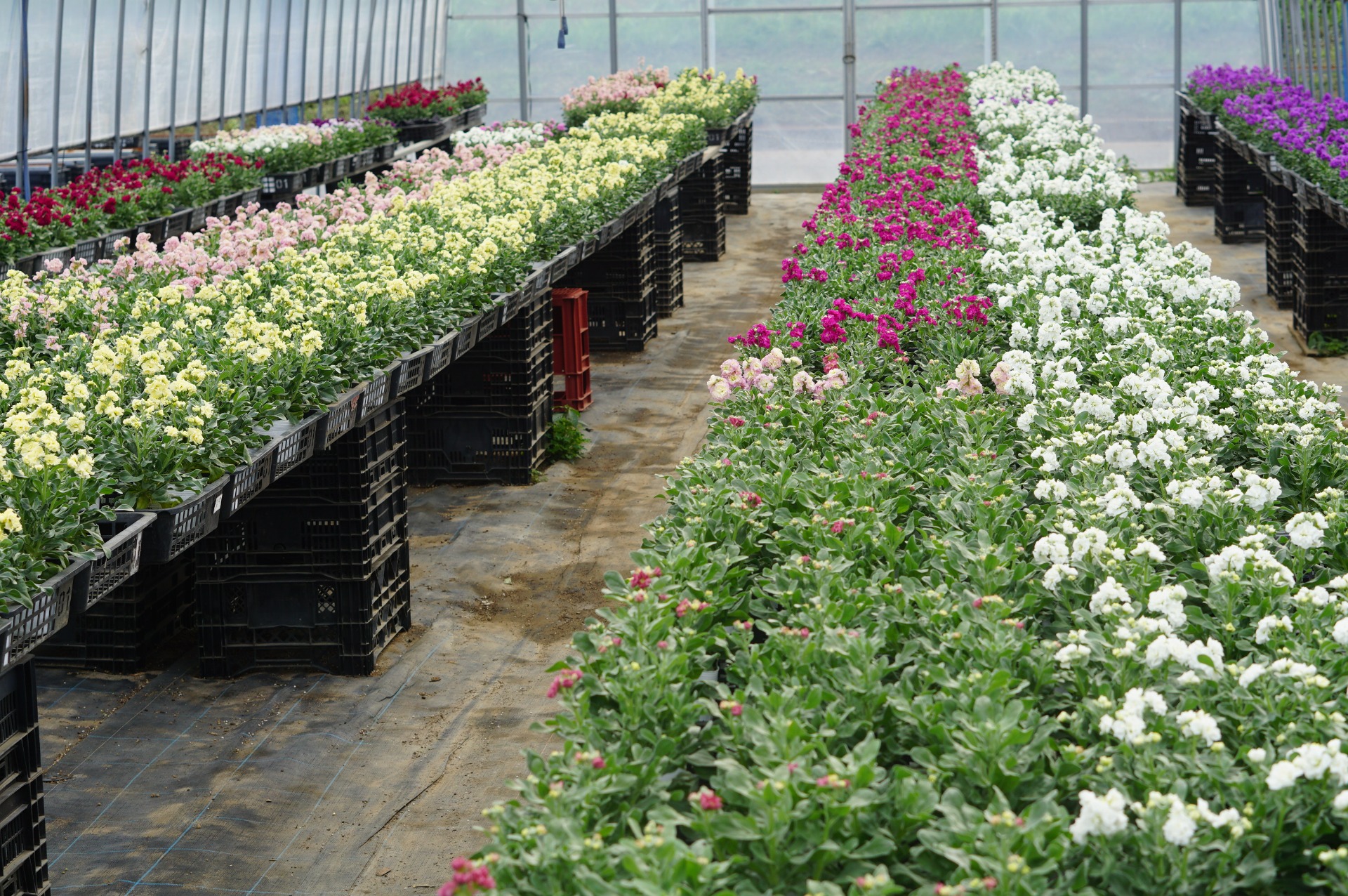 ストックも出来上がりました、大人気ですよ~、ストック・アリッサムはハウス内で生産中